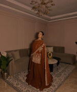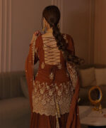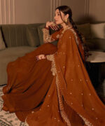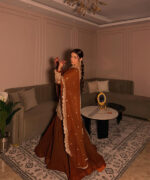 Discover the Amber Bloom Hand-Embroidered Lehenga Set, designed in a rich amber hue with exquisite golden zari and threadwork. The set features a modern lace-up blouse, a lightweight georgette lehenga, and a beautifully scalloped dupatta. Perfect for weddings, festive occasions, engagement functions, and family celebrations, this outfit blends traditional craftsmanship with a refined contemporary style.