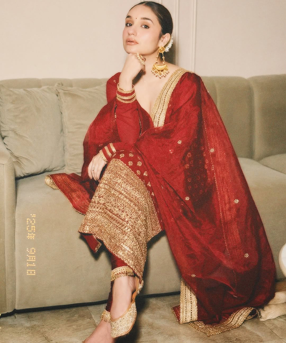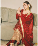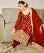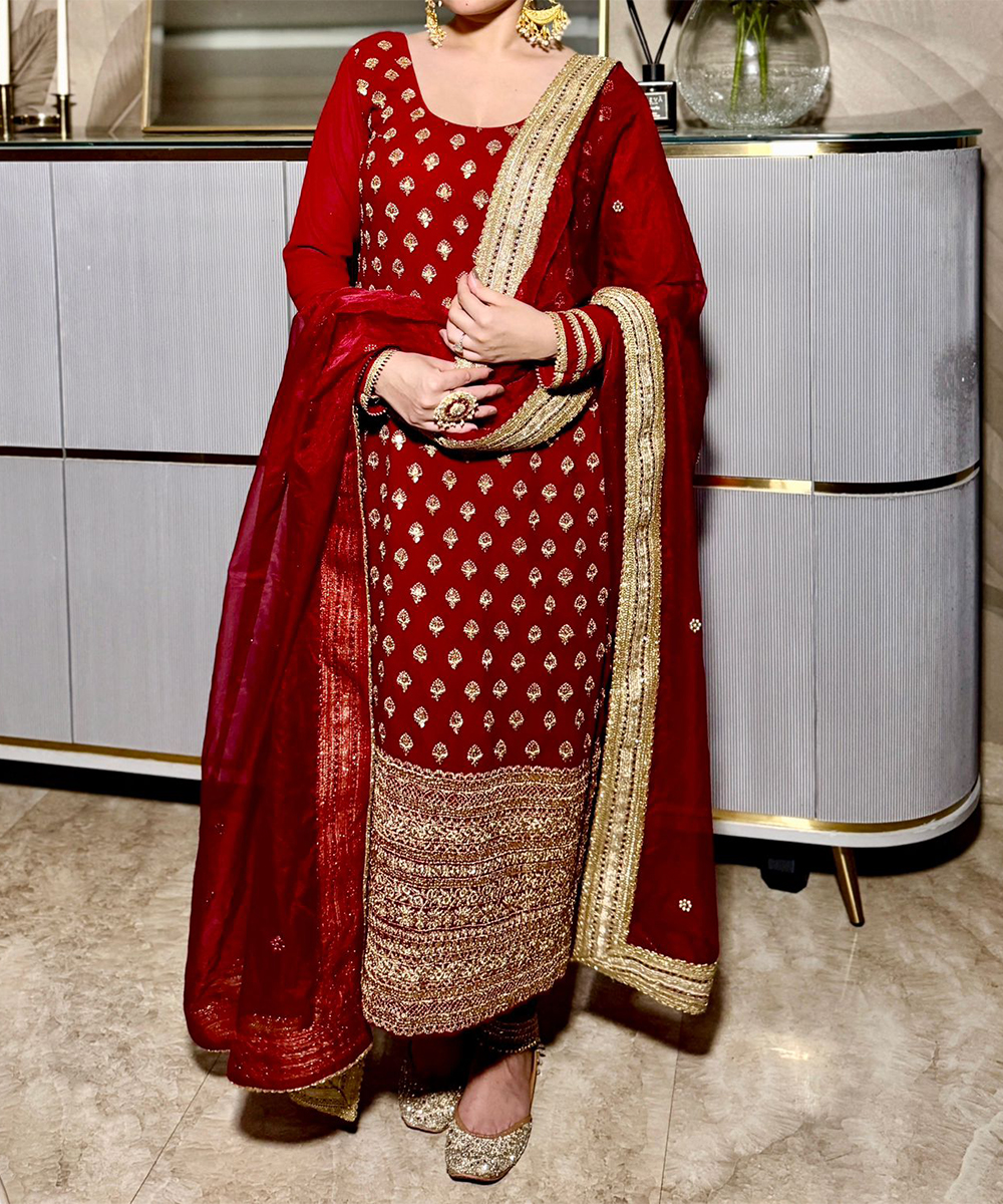 Talara Maroon Georgette Zari Work Suit Set with Organza Dupatta